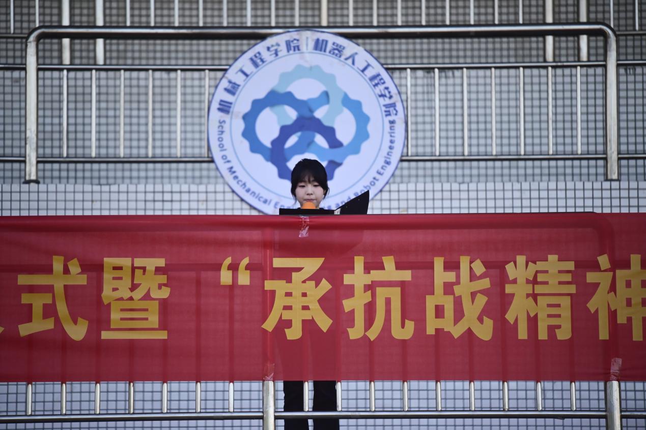 学院书记任春雯在国旗下发表讲话,围绕“新时代青年的使命与担当”提出三点殷切期望:一是赓续红色血脉,从抗战故事中汲取信仰力量,将爱国情怀深植心田,让红色基因成为青春最鲜亮的底色;二是深耕专业沃土,以“每日精进”的执着锤炼技术本领,立足机械工程与机器人领域,为科技强国建设储备核心能力;三是勇立时代潮头,以“青春之我”投身民族复兴实践,在实践中传承奋斗精神,让个人成长与国家发展同频共振。